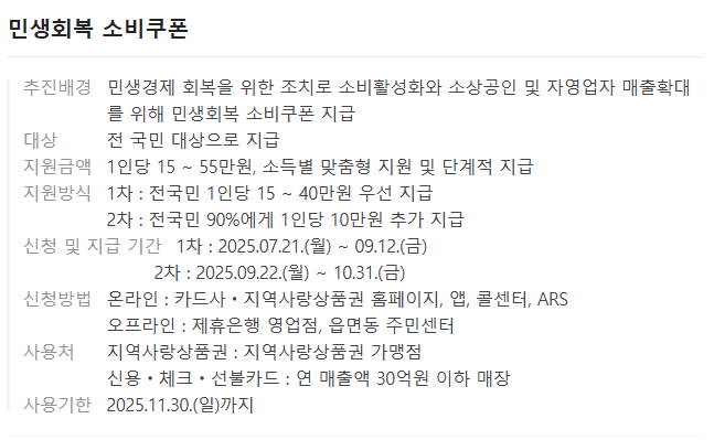 🔸민생회복 소비쿠폰의 자세한 정보를 아래에서도 확인 가능합니다. 👇